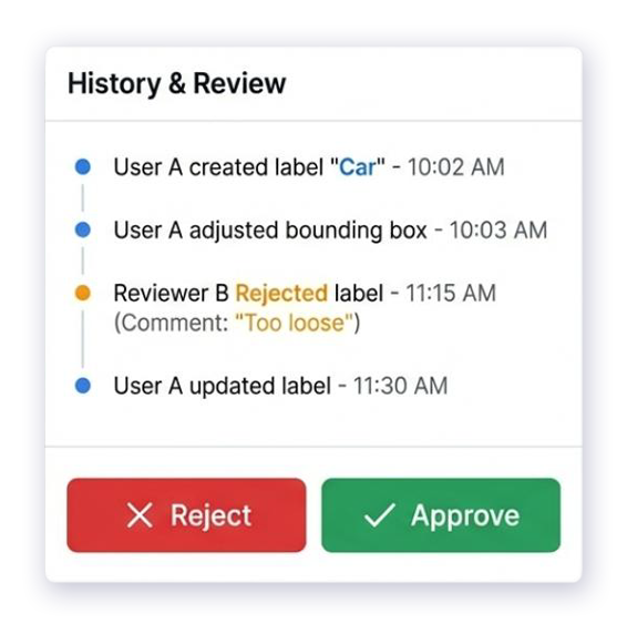 Strict separation of duties between Annotators and Reviewers to ensure unbiased QA